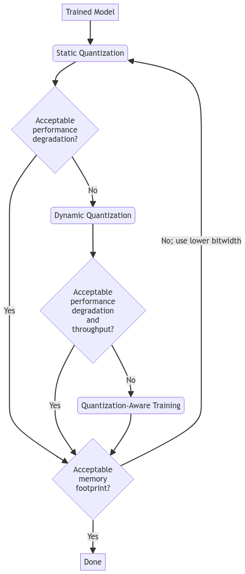 | Suitable usage | Transformers; languages; large variation in activations | CNN; vision; fixed, known variation in activations | When either dynamic or static quantization leads to poor accuracy |